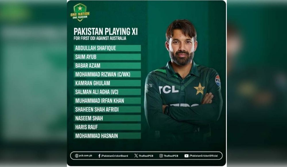آسٹریلیا کیخلاف پہلا ون ڈے،پاکستان نے پلیئنگ الیون کا اعلان کر دیا