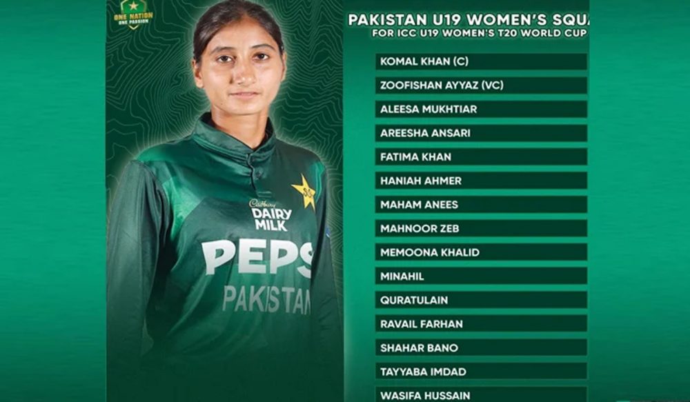 انڈر 19 ویمنز ٹی ٹوئنٹی ورلڈ کپ میں کومل خان پاکستان ٹیم کی قیادت کریں گی۔