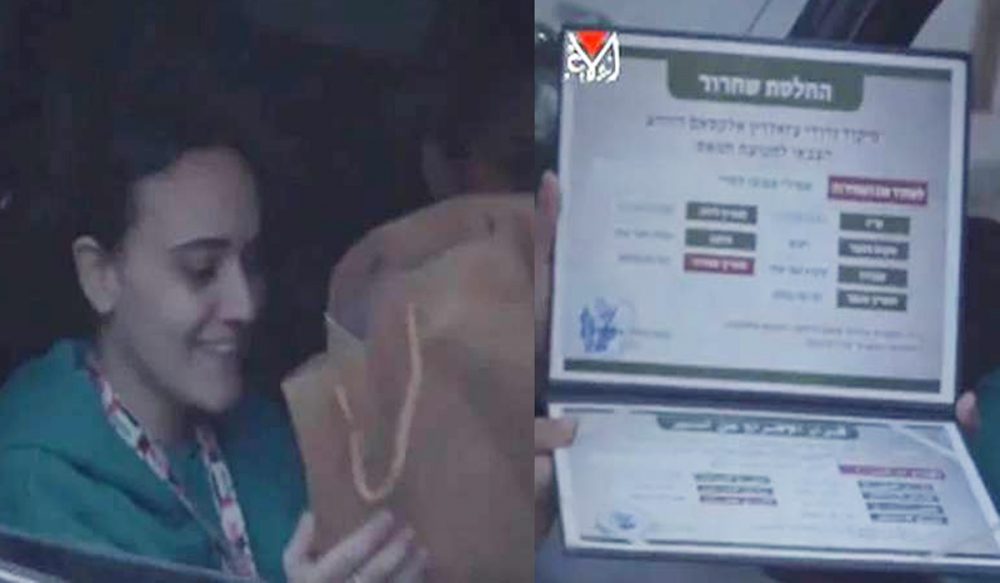 رہائی کے موقع پر حماس کی جانب سے تینوں اسرائیلی خواتین کو یادگاری تحفے میں ایک بیگ دیا گیا۔