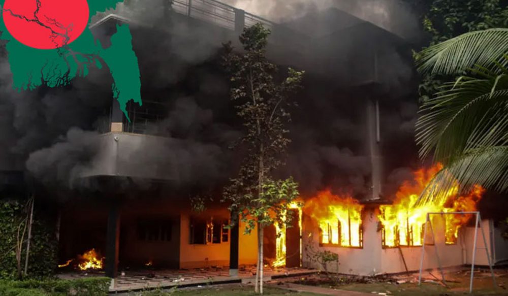 ڈھاکا میں ہزاروں مشتعل مظاہرین نے بنگلا دیش کی سابق وزیرِ اعظم شیخ حسینہ واجد کے آبائی گھر کو آگ لگا دی۔