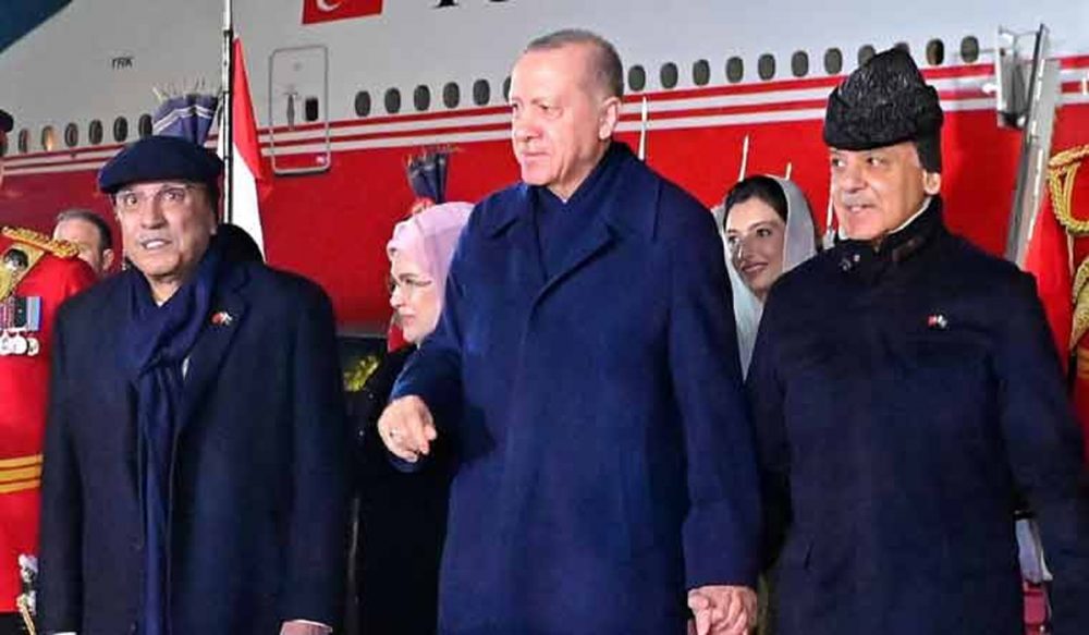 وزیراعظم شہباز شریف کی دعوت پر ترکیہ کے صدر پاکستان آئے، ترکیہ کے صدر کا طیارہ نور خان ایئربیس پر اترا جہاں صدر مملکت آصف علی زرداری، وزیراعظم شہباز شریف، وزیر خارجہ اسحاق ڈار سمیت وفاقی وزرا اور دیگر حکام موجود تھے۔