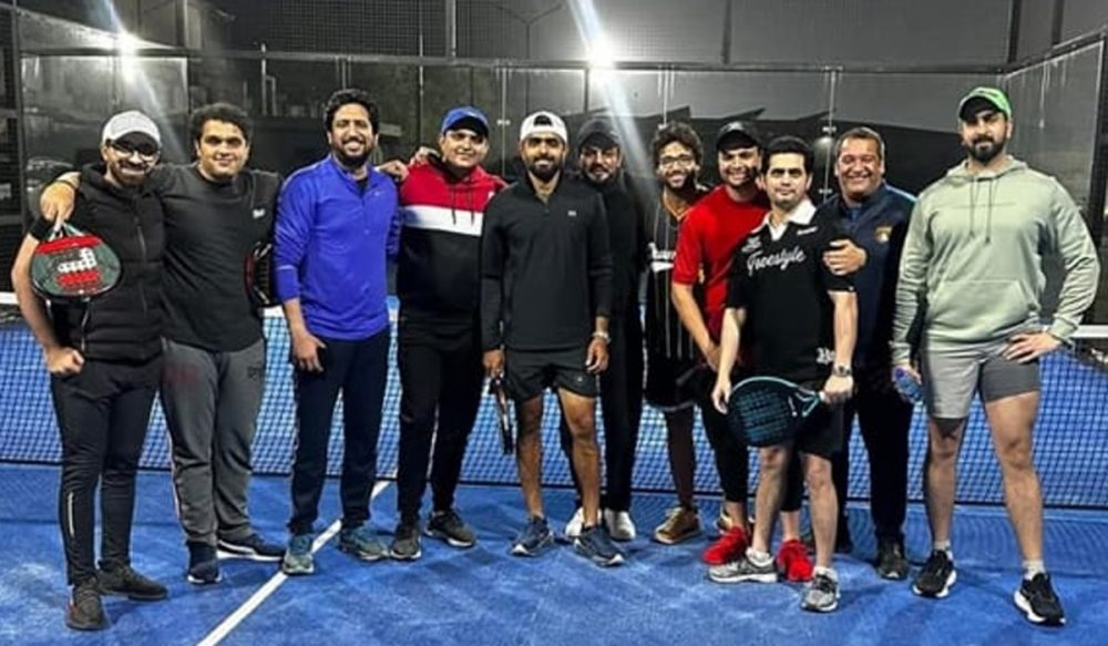 بابر اعظم بھائیوں، ساتھی کرکٹرز اور دوستوں کے ساتھ پیڈل ٹینس کھیل رہے تھے۔