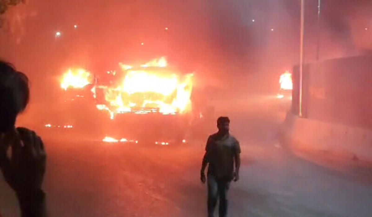 کراچی کے علاقے سخی حسن کے قریب مشتعل افراد نے واٹر ٹینکر کو آگ لگادی۔