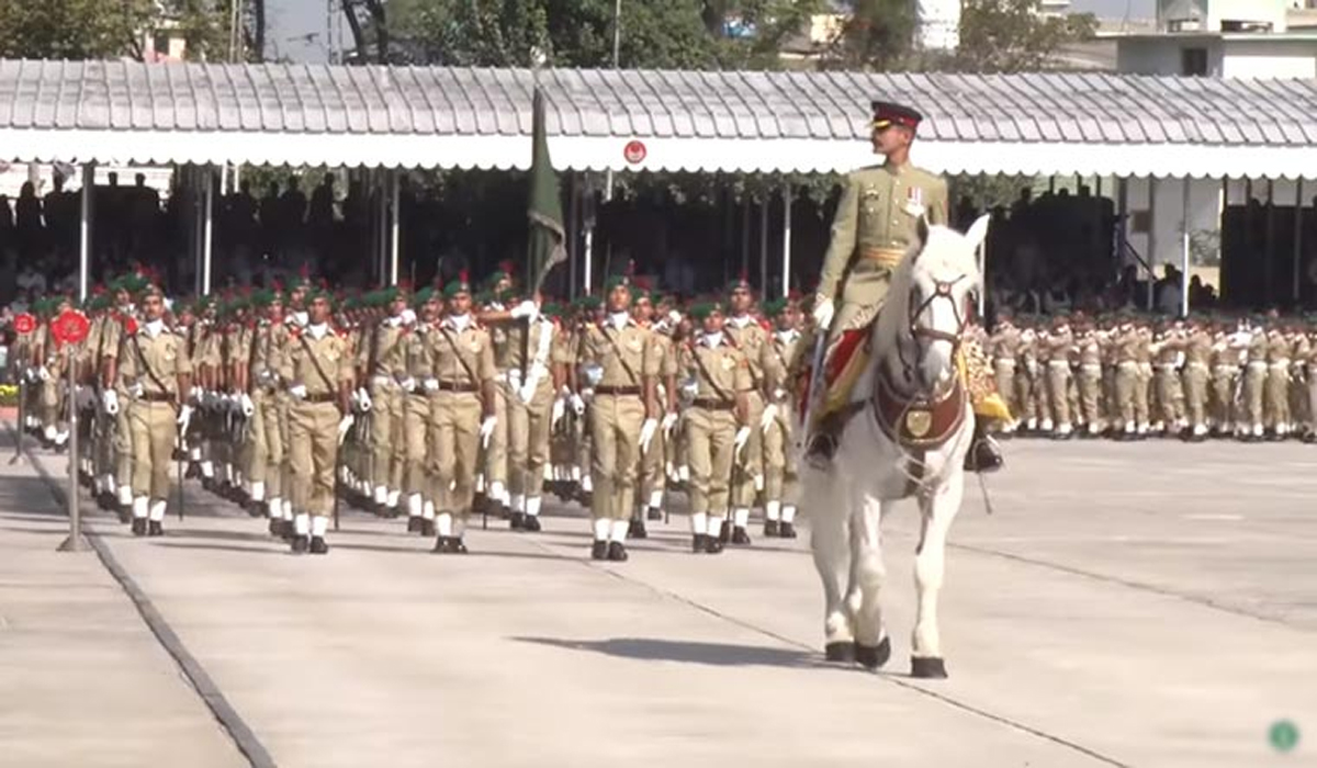 کاکول: پی ایم اے کاکول میں پاسنگ آوٹ پریڈ کی پور وقار تقریب جاری ہے جس میں سیاسی و عسکری قیادت شریک ہے۔