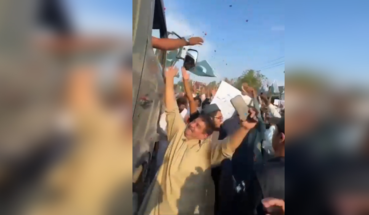 پاکستانی عوام پاک فوج کے جوانوں پر پھولوں کی پتیاں نچھاور کر رہے ہیں