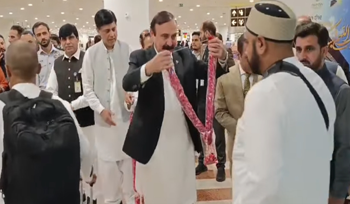 ایئر پورٹ پر وزیر پارلیمانی امور طارق فضل چوہدری، حکام وزارت مذہبی امور نے حجاج کا استقبال کیا۔