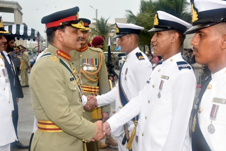 آرمی چیف فیلڈ مارشل سید عاصم منیر نے آج کراچی میں پاکستان نیوی کی پاسنگ آؤٹ پریڈ سے خطاب کرتے ہوئے کہا کہ دوست ملک کے کیڈٹس کو مبارک باد دیتے ہیں، ترقی کےلیے عوام، حکومت اور افواج کے درمیان مضبوط تعلق ناگزیر ہے۔