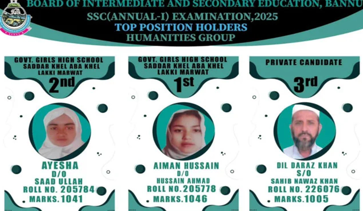 خیبرپختونخوا کے ضلع بنوں میں میٹرک کے امتحانات کے نتائج کا اعلان ہوگیا۔
