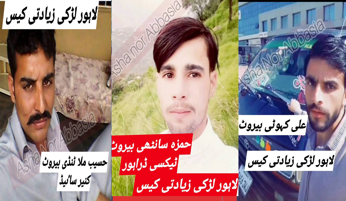 درندگی میں ملوث تینوں ملزمان کا تعلق ایبٹ آباد سرکل بکوٹ کی یو سی بیروٹ سے ہے ، جن میں ٹویوٹا ہائی ایس ڈرائیور علی ولد ذاکر۔ ٹیکسی ڈرائیور حمزہ اختر اور حسیب شامل ہیں۔ سوشل میڈیا پر شدید رد عمل اور عوام میں اشتعال کے باعث بکوٹ پولیس نے رات گئے ایک ملزم حسیب کو گرفتار کر لیا جبکہ دیگر ملزمان کی تلاش جاری ہے۔علاقے کے عوام نے ملزمان کو عبرتناک سزا دینے کا مطالبہ کرتے ہوئے کہا ہے کہ کسی ملزم کو بچانے کی کوئی بھی کوشش کامیاب نہیں ہونے دی جائے گی۔واضح رہے کہ درندگی کے اس واقعے میں ملوث ملزمان نامعلوم مقام سے ویڈیو بیانات کے ذریعے خود کو بے گناہ قرار دے رہے ہیں جبکہ حسیب نامی ایک ملزم نے وعدہ معاف گواہ بننے کی کوشش میں دیگر دو کے خلاف اعترافی بیان بھی جاری کیا ہے۔ دوسری طرف مظلوم لڑکی کے ورثاء سے تفصیلات حاصل کرنے کے لیے ایبٹ آباد پولیس لاہور روانہ ہو گئی ہے۔ذرائع کے مطابق لڑکی کے میڈیکل چیک اپ کے بعد کیس میں اہم پیشرفت متوقع ہے