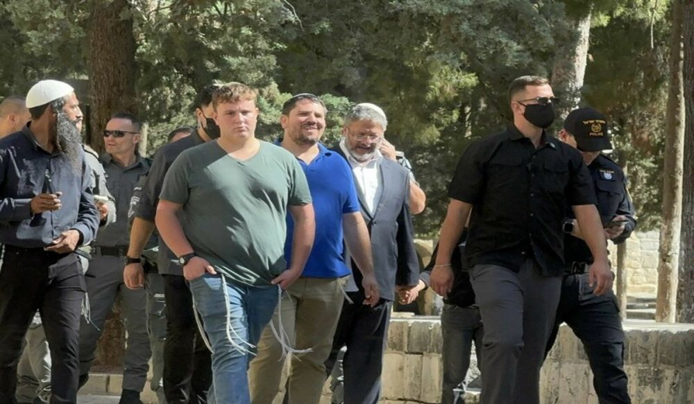 اتوار کو اسرائیلی وزیر بن گویر نے مقبوضہ مشرقی بیت المقدس میں واقع مسجد اقصیٰ کے احاطے میں دراندازی کی اور مبینہ طور پر تلمودی رسومات ادا کیں، اس دوران اسرائیلی قابض فورسز نے ان کو تحفظ فراہم کیا۔ اس موقع پر کم از کم 1251 غیر قانونی آبادکار مسجد اقصیٰ میں داخل ہوئے، جبکہ فلسطینی نمازیوں، صحافیوں اور مسجد کے محافظوں پر حملے کیے گئے۔
