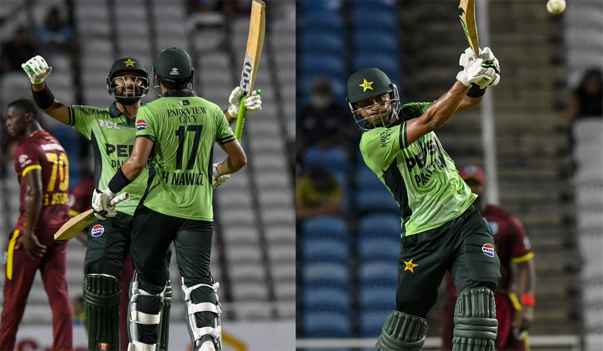 ویسٹ انڈیز کے 281 رنز کے ہدف کے تعاقب میں صائم ایوب 5، عبداللّٰہ شفیق 29، بابر اعظم 47، سلمان آغا 23 اور محمد رضوان 53 رنز بناکر آؤٹ ہوئے۔