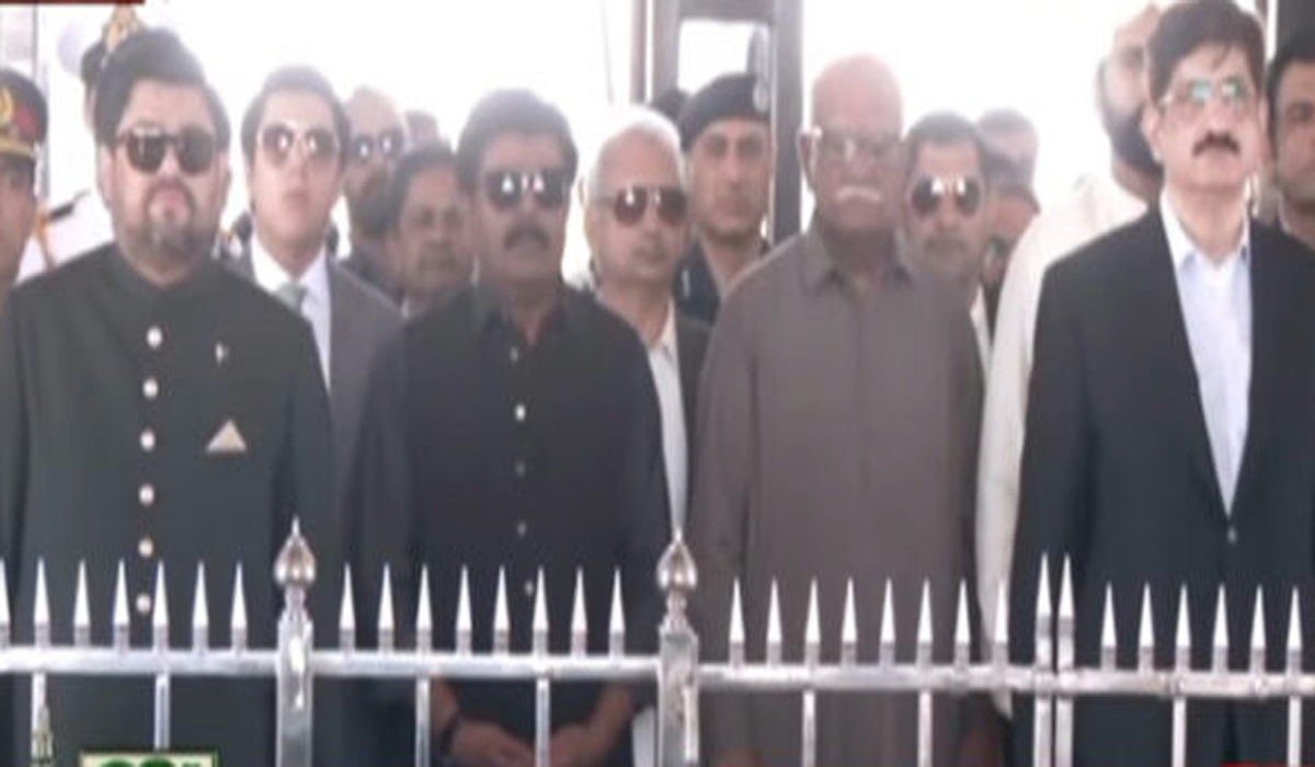 ترجمان نے کہا کہ مراد علی شاہ اور کامران ٹیسوری نے قومی پرچم لہرایا اور وزیراعلیٰ سندھ نے کابینہ ارکان کے ساتھ مزار قائد پر پھول رکھے اور دعا کی۔