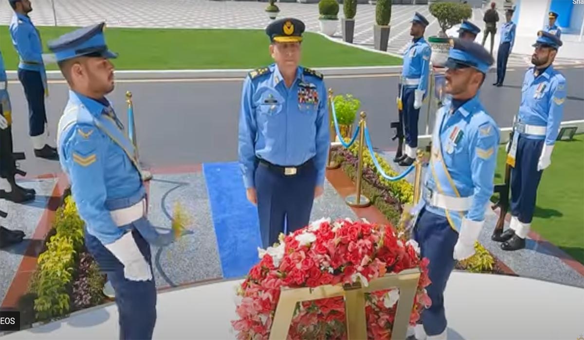 تقریب کے اختتام پر ایئر چیف مارشل نے یادگارِ شہداء پر پھولوں کی چادر چڑھائی اور شہداء کے درجات کی بلندی کے لیے دعا کی۔
