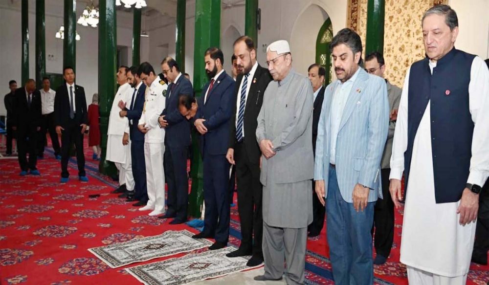 کاشغر: صدرِ پاکستان آصف علی زرداری نے چین کے شہر کاشغر میں واقع تاریخی عیدگاہ مسجد کا دورہ کیا، جہاں ان کا استقبال کاشغر کے کمیونسٹ پارٹی سیکرٹری یاو ننگ اور امام میماتی جوبن نے کیا۔