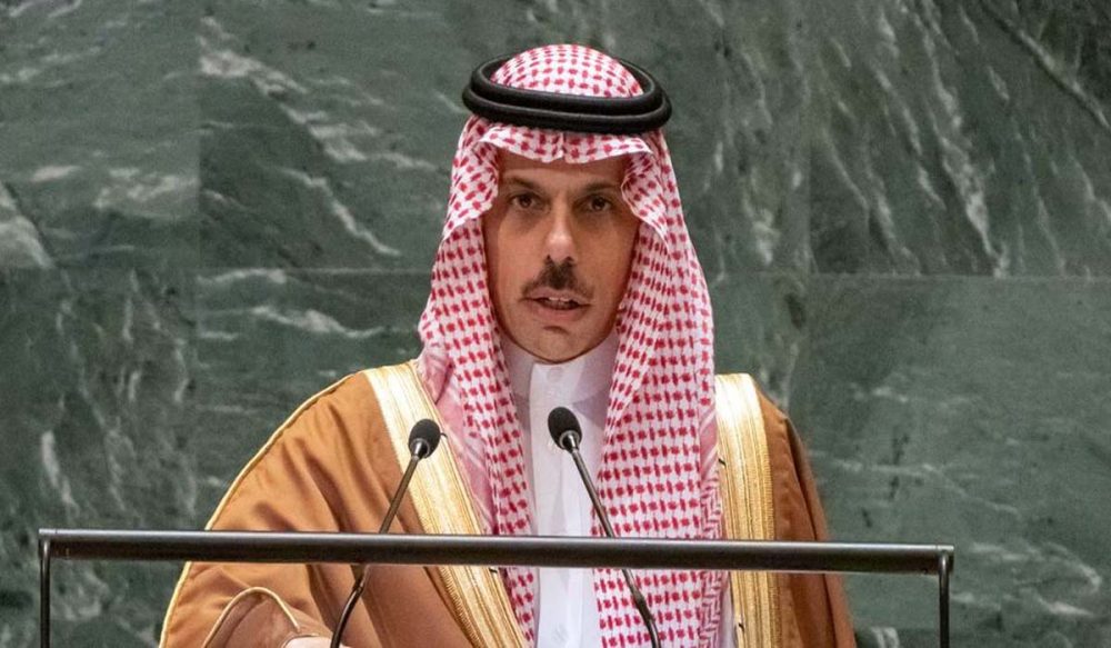 اقوام متحدہ کی فلسطین کانفرنس سے خطاب کرتے ہوئے فیصل بن فرحان نے کہا کہ خطے میں دیرپا امن کے قیام کے لیے دو ریاستی حل ہی واحد راستہ ہے۔