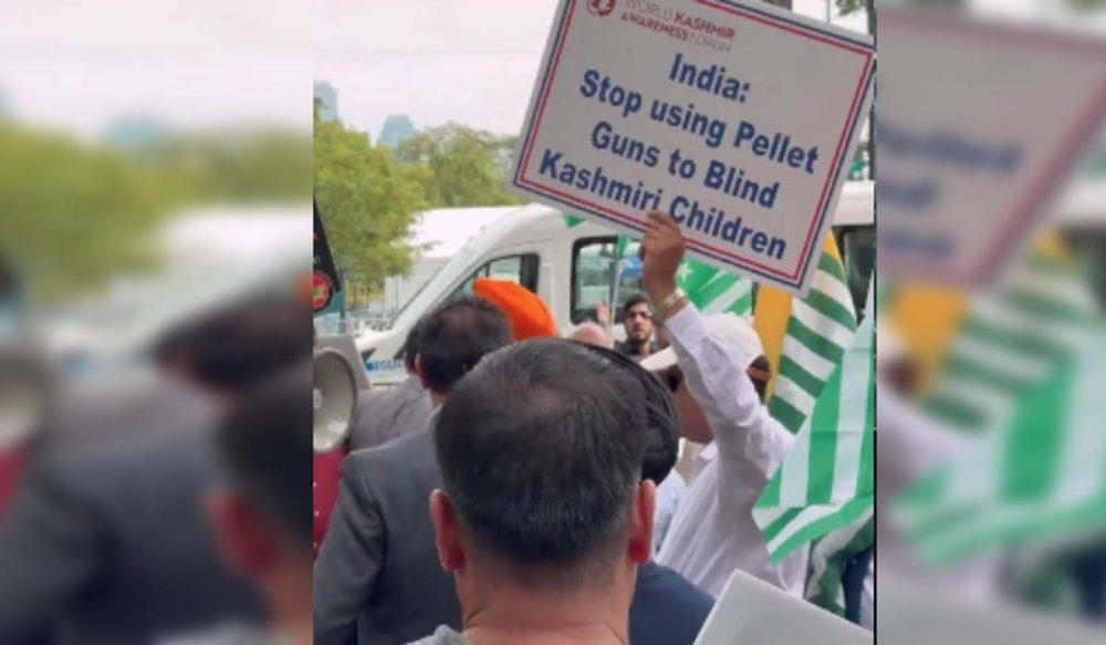 نیویارک میں اقوام متحدہ کی جنرل اسمبلی کے اجلاس کے موقع پر بھارتی وزیر خارجہ جے شنکر کے خطاب کے دوران کشمیریوں نے دفتر کے باہر بھرپور احتجاج کیا۔