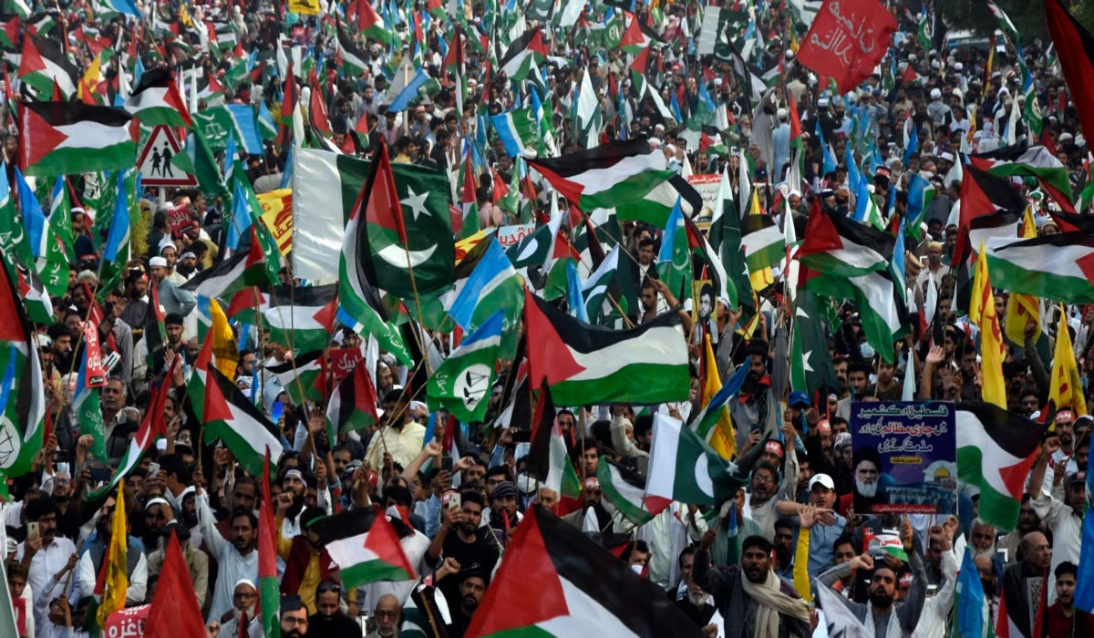 غیر ملکی خبر رساں اداروں کے مطابق پاکستان میں مظلوم فلسطینیوں کے حق میں مختلف شہروں میں احتجاجی ریلیاں نکالی گئیں جن میں شہریوں کی بڑی تعداد نے شرکت کی۔
