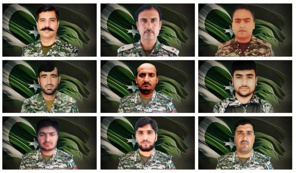شہداء میں ایک لیفٹیننٹ کرنل، سیکنڈ ان کمانڈ میجر اور دیگر 9 سپاہی شامل ہیں جنہوں نے ملک کے دفاع اور امن کے لیے اپنی جانوں کا نذرانہ پیش کیا۔