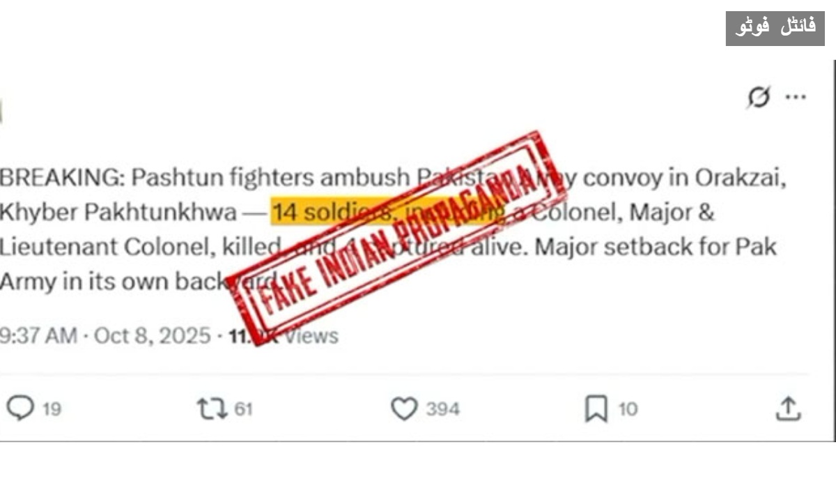 این ڈی ٹی وی نے دعویٰ کیا کہ 8 اکتوبر کو کرم میں فتنہ الخوارج نے پاک فوج کے 22 جوان شہید کیے، لیکن آئی ایس پی آر نے تصدیق کی کہ کارروائی ضلع اورکزئی میں ہوئی، کرم میں نہیں۔ اس آپریشن میں 11 فوجی شہید ہوئے جبکہ 19 خوارج ہلاک ہوئے۔