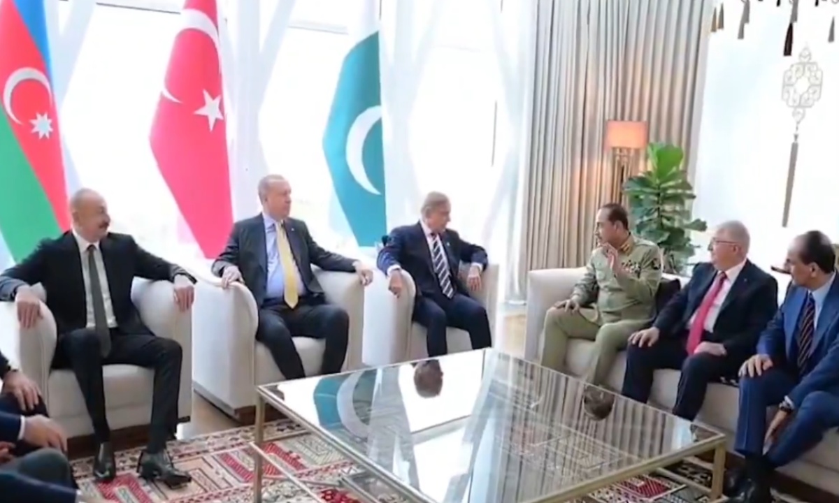 ترکیہ کے صدر عزت مآب رجب طیب ایردوان اور وزیراعظم پاکستان محمد شہباز شریف کے درمیان ملاقات ؛ چیف آف دی آرمی اسٹاف فیلڈ مارشل سید عاصم منیر بھی موجود تھے