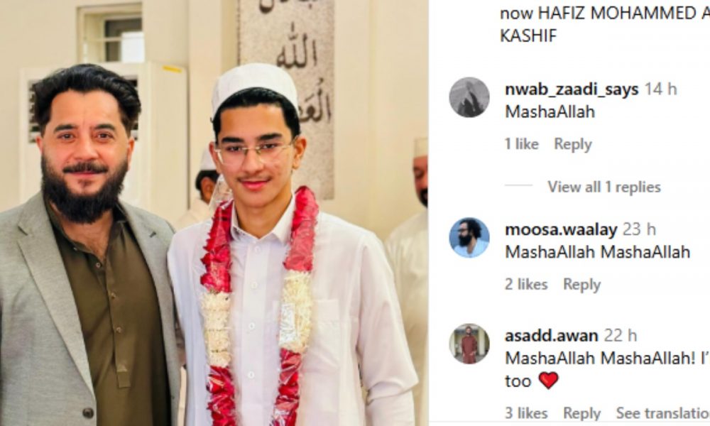 کاشف محمود نے اس خوشی کے موقع پر اپنے بیٹے کے ساتھ تصویر شیئر کرتے ہوئے کہا: “الحمداللہ، میرا منجلا بیٹا حافظ قرآن بن گیا ہے۔” تصویر میں اداکار کی خوشی واضح طور پر دیکھی جا سکتی ہے، اور وہ اپنے بیٹے کی اس کامیابی پر فخر محسوس کر رہے ہیں۔