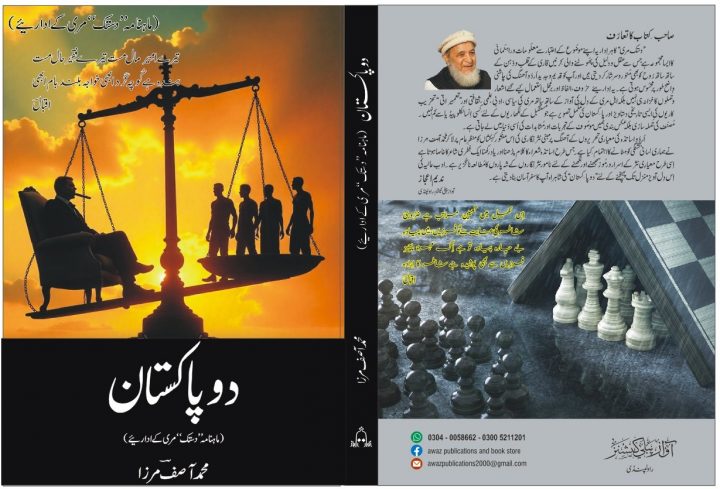 یہ اداریئے حروف ،الفاظ اور بر محل استعمال کِیے گئے اشعار و جملوں کا خزانہ ھی نہیں بلکہ اہلِ مری کے دِل کی آواز کے ساتھ ساتھ مری کی سیاسی، ادبی، علمی، ثقا فتی معلُومات اور "تعمیراتی تخریب کاریوں” کی ایسی تارِیخی دستاویز اور پاکستان کی مکمل تصوِیر ھے جو مستقبل کے لکھاریوں کے لئے کسی انسائیکلوپیڈیا سے کم نھیں۔ مُصنّف کی جُملہ سازی بلکہ عکس بندی ہمیں موصُوف کے تجربات اور مشاہدات کی اُس دنیا میں لے جاتی ھے،جہاں وہ لے جانا چاہتے ہیں ۔ اُردُو اساتذہ کی معیاری تحرِیروں کے آھنگ پر مبنی نثر نگاری کی اس منثُور کہکشاں کو منظرِ عام پر لاکر مِرزا صاحب نے ہماری لسانی تَشنگی کو بُجھانے کا اہتمام کیا ہے ۔ جِس طرح اُستاذ شعرائے کرام کا کلام پڑھنا اور یاد رکھنا ایک فطری شاعر کا خاصا ھوتا ہے ۔ اُسی طرح معیاری نثر کے اسرار و رموز سمجھنے اور لکھنے والے نامور نثر نِگاروں کے شہ پاروں کا مطالعہ ناگُزیر ہے۔ ادبِ عالیہ کی اِس دِل آویز منزل تک پہنچنے کے لیے "دو پاکستان” کی شاھراہ آپ کا سفر آسان بنا دیتی ھے” اور آپ یہ کہنے پر مجبُور ہو جاتے ہیں کہ :