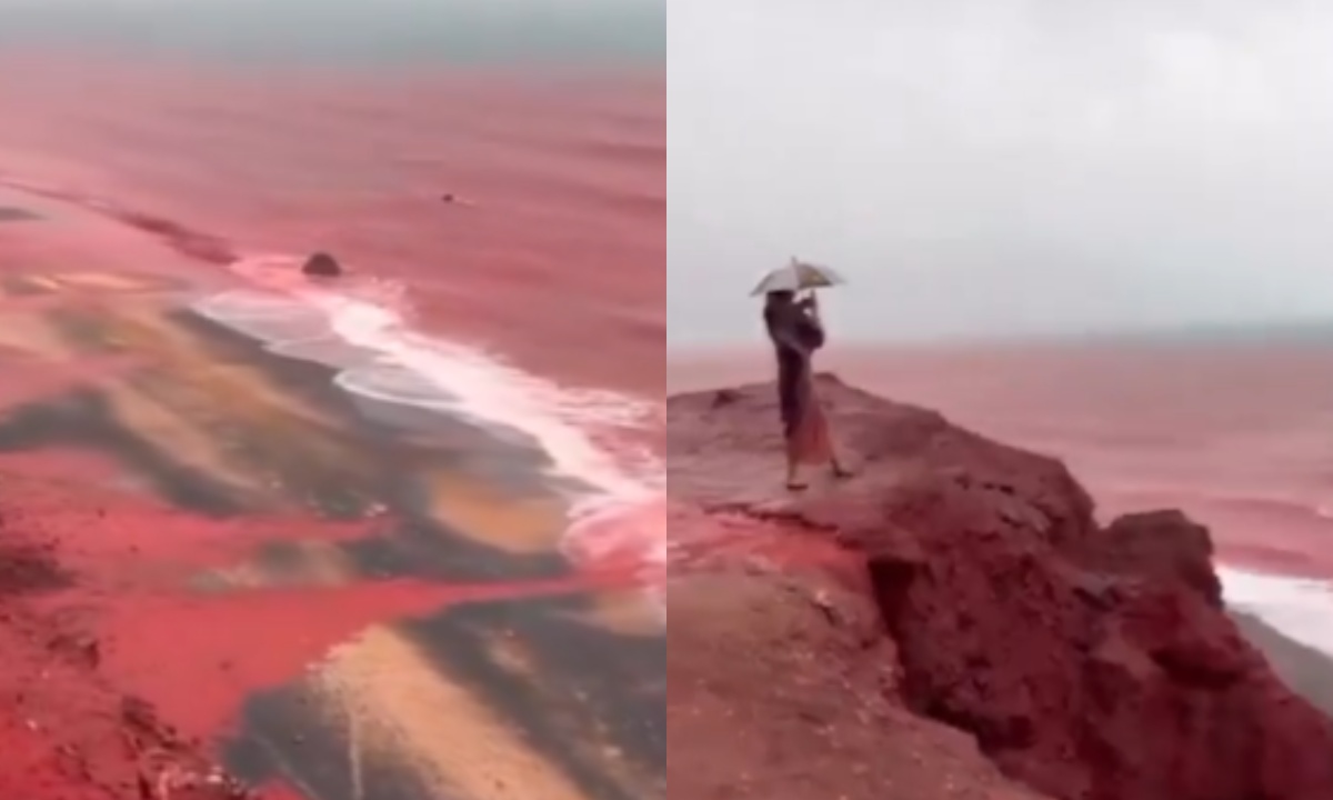 Today’s rain on Hormuz Island in southern Iran caused the seawater along the shore to turn red, creating striking scenes. pic.twitter.com/wU4xhZKKOa