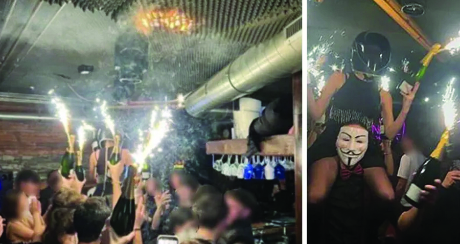 بار کے اندر سے ایک تصویر میں کم از کم چھ بوتلیں دکھائی دیتی ہیں جن سے آگ اور دھواں فضامیں بلند ہوتاہے۔ایک آزاد فائر کنسلٹنٹ نے بتایا کہ صوتی ٹائلوں کی موجودگی، جو تصویروں میں چھت پر دیکھی جا سکتی ہے، آگ پھیلنے کا ذریعہ بنی۔