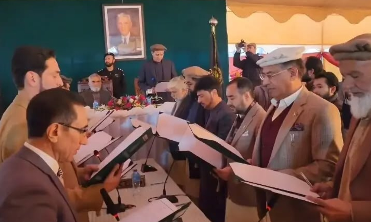گلگت: گلگت بلتستان کی نگران کابینہ نے گورنر ہاؤس میں منعقدہ تقریب میں حلف اٹھا لیا۔ تقریب میں سپیکر گلگت بلتستان اسمبلی نذیر احمد نے نگران کابینہ کے ارکان سے حلف لیا۔