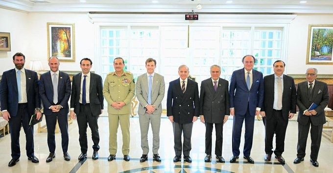 وزیراعظم شہباز شریف سے ورلڈ لبرٹی فنانشل کے امریکی وفد نے ملاقات کی، جس میں نائب وزیراعظم محمد اسحاق ڈار، وزیر خزانہ محمد اورنگزیب، چیئرمین پاکستان ورچوئل اثاثہ جات ریگولیٹری اتھارٹی اور دیگر اعلیٰ حکام شریک تھے۔ وفد کی قیادت ورلڈ لبرٹی فنانشل کے چیف ایگزیکٹو آفیسر زکری وِٹکوف نے کی۔