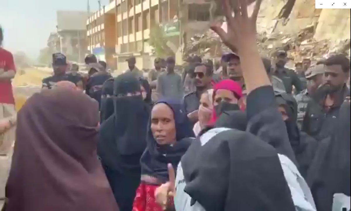 کراچی میں گل پلازہ آتشزدگی کے واقعے پر لاپتا افراد کی اہلِ خانہ کی خواتین نے عمارت کے باہر احتجاج کیا۔ بڑی تعداد میں خواتین جلی ہوئی عمارت کے سامنے جمع ہو گئیں اور حکومت کے خلاف شدید نعرے بازی کی۔