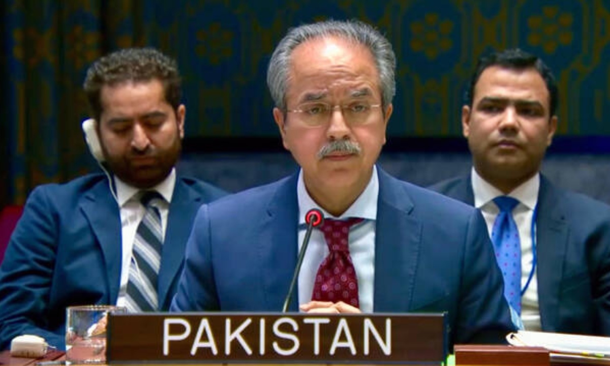 پاکستانی مندوب نے کہا کہ بھارت کی جانب سے گزشتہ سال پاکستانی خودمختاری کی خلاف ورزی کی گئی، جبکہ جنوبی ایشیا میں کشیدگی کی بنیادی وجہ مسئلہ کشمیر پر بھارت کا غیر قانونی قبضہ ہے۔ ان کے مطابق پاکستان نے اس صورتحال میں اپنے حقِ دفاع کو ذمہ داری، تحمل اور متناسب انداز میں استعمال کیا۔