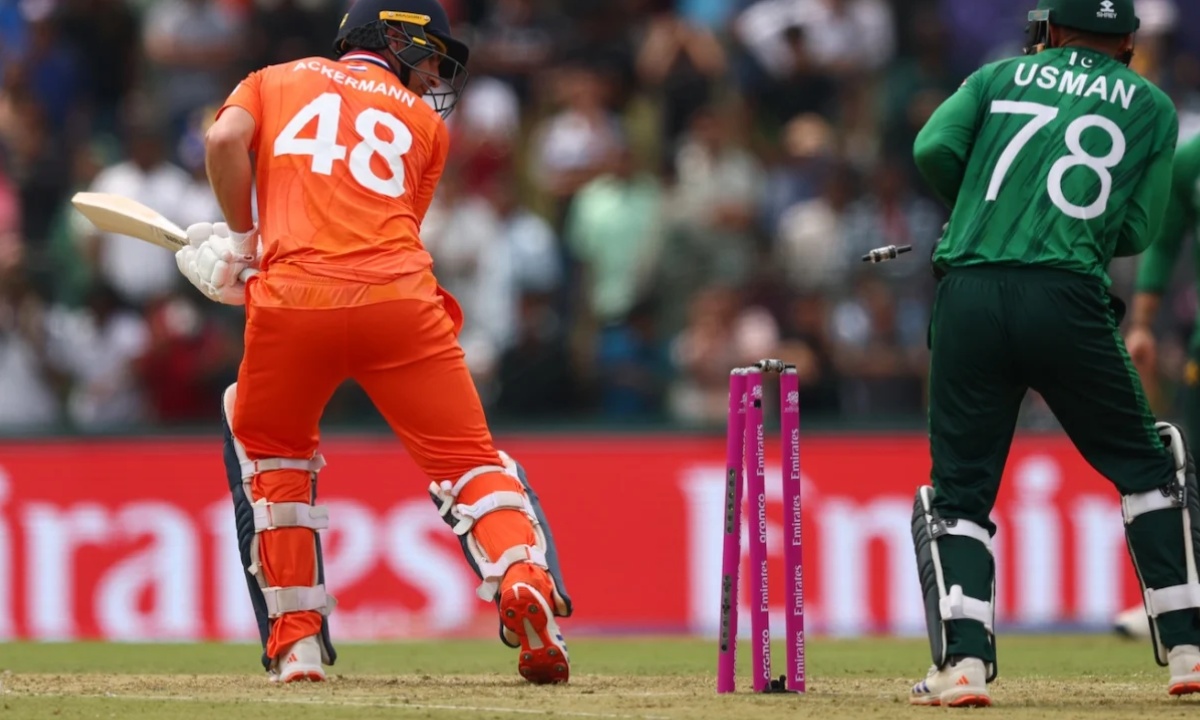 اس وقت کریز پر باس ڈی لیڈے 21 رنز اور کپتان سکاٹ ایڈورڈز 6 رنز بنا کر موجود ہیں۔ پاکستان کی جانب سے ابرار احمد نے نپی تلی بولنگ کرتے ہوئے 2 اوورز میں 14 رنز دے کر ایک اہم وکٹ حاصل کی ہے، جبکہ شاداب خان نے اپنے 2 اوورز میں 15 رنز دیے ہیں۔ نیدرلینڈز کی آخری گرنے والی وکٹ کولن ایکرمین کی تھی جو 20 رنز بنا کر ابرار احمد کا شکار بنے۔