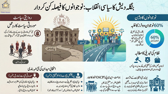 بنگلہ دیش اس وقت ایک ایسے جیو پولیٹیکل اور داخلی تاریخی موڑ پر کھڑا ہے جہاں روایتی موروثی سیاست کے ستون تیزی سے بکھر رہے ہیں۔ ملک کی 60 فیصد نوجوان آبادی محض ایک شماریاتی حقیقت نہیں بلکہ ایک ایسی فیصلہ کن قوت بن کر ابھری ہے جو دہائیوں پر محیط “جمود” (Status Quo) کو چیلنج کر رہی ہے۔ 12 فروری کے انتخابات سے محض تین دن قبل، سیاسی فضا یہ واضح کر رہی ہے کہ بنگلہ دیش کا مستقبل اب خاندان پرستی کے بجائے “استحقاقیت” (Meritocracy) اور قابلیت سے جڑا ہے۔ یہ رپورٹ اس بنیادی تبدیلی کا احاطہ کرتی ہے جس کا مقصد موروثیت کا خاتمہ اور ایک ایسے نظام کا قیام ہے جہاں حکمرانی کا حق صرف اہل اور باصلاحیت قیادت کو حاصل ہو۔