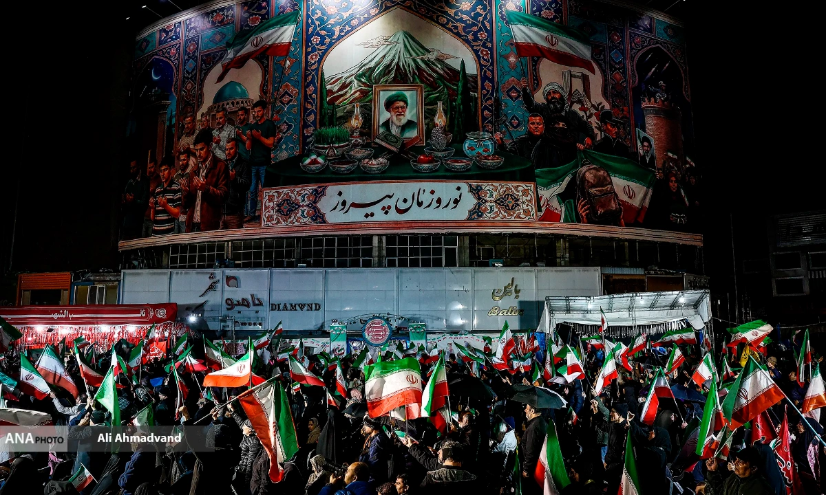 تہران کے میدان ولیعصر میں ریلی کے دوران شرکا پاکستان شکریہ کے نعرے لگاتے ہوئے۔