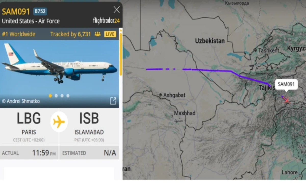اسی طرح امریکی وفد بھی تین سرکاری طیاروں کے ذریعے اسلام آباد پہنچا۔ ذرائع کے مطابق ان میں “ایس اے ایم 091”، “ایس اے ایم 095” اور “این 471” شامل تھے۔ ان پروازوں میں اعلیٰ امریکی حکام اور مشیران کی آمد کی اطلاعات ہیں۔
