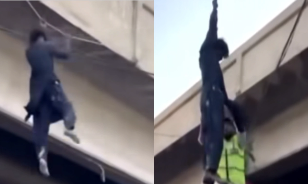 مذکورہ شخص فلائی اوور کے کنارے سے نیچے کی جانب لٹکا ہوا تھا اور کسی بھی وقت حادثہ پیش آنے کا خدشہ تھا۔