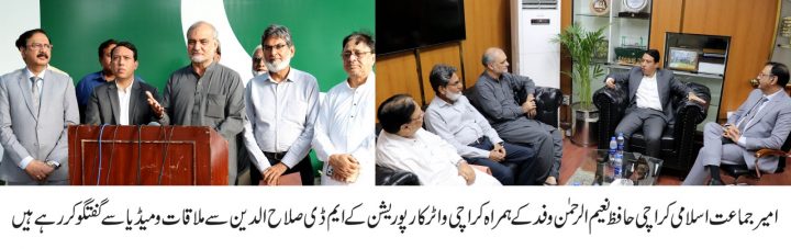 شہریوں کو پانی کی منصفانہ تقسیم جاری ہے،صلاح الدین August 22, 2023 سی ای او واٹرکارپوریشن سےامیرجماعت اسلامی کراچی حافظ نعیم کی ملاقات