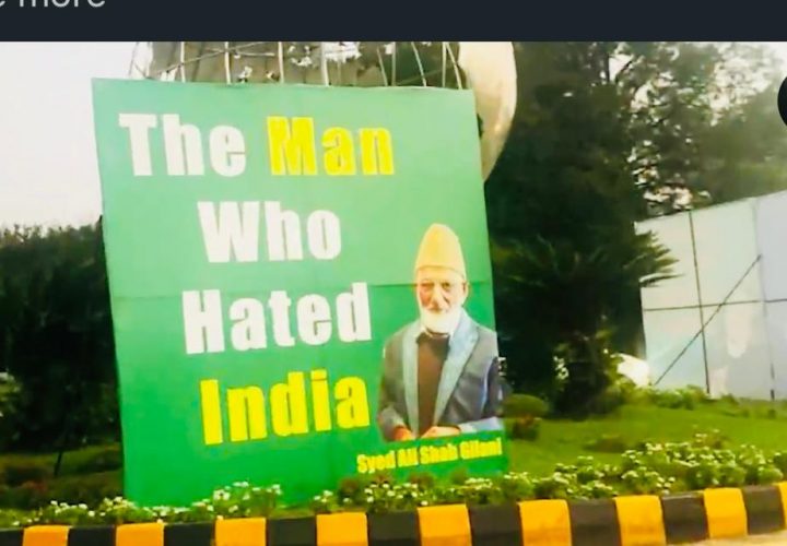 علی گیلانی کے یوم شہادت پرنامناسب تحریر کا ہورڈنگ نصب September 1, 2023 اسلام آبادمیں تصویرکے ساتھ’ اس شخص نے بھارت سے نفرت کی‘ درج - خلاف حقیقت بات ہے- ماہرین امور کشمیر