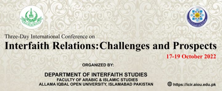 علامہ اقبال اوپن یونیورسٹی میں “بین المذاہب تعلقات” پر عالمی کانفرنس October 24, 2022 ملکی وبین الاقوامی ماہرین، اساتذہ اور محققین مقالات پیش کریں گے۔ شیخ الجامعہ ڈاکٹر ضیاءالقیوم صدارت کرینگے
