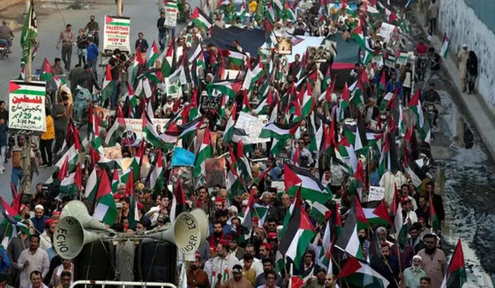 فلسطینیوں سے اظہار یکجہتی،آج ملک بھرمیں ریلیاں اورجلوس نکالےجائیں گے April 11, 2025 غیر مشروط جنگ بندی تک اسرائیل کیساتھ تعلقات قائم کرنے والے ممالک سے سفارتی تعلقات ختم کئے جائیں۔