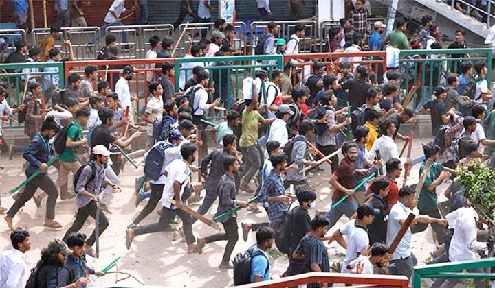بنگلہ دیش میں پرتشدد مظاہرے جاری، ہلاکتوں کی تعداد 10 ہوگئی July 18, 2024 متعدد شہروں میں موبائل اور انٹرنیٹ پر پابندی عائد کردی گئی ہے۔