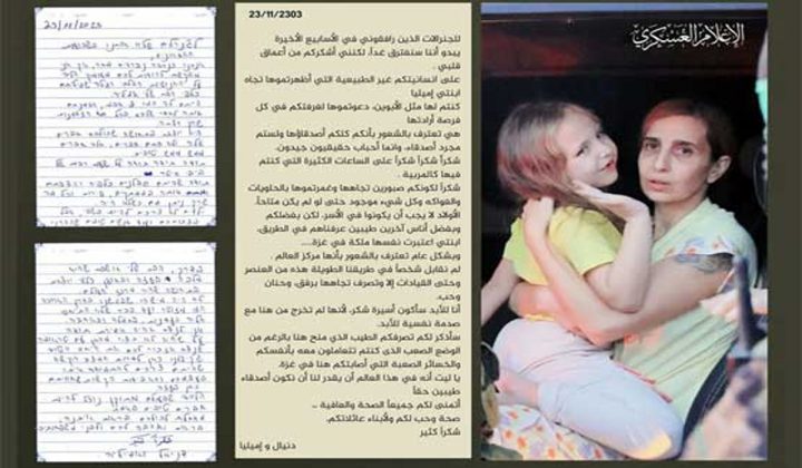 حماس کے حسن سلوک کا سب کو بتاؤں گی،رہا اسرائیلی خاتون کا خط سامنےآ گیا November 28, 2023 میں آپ سب کا دل کی گہرائیوں سے شکریہ ادا کرتی ہوں کہ آپ نے میری بیٹی کے ساتھ حسن…