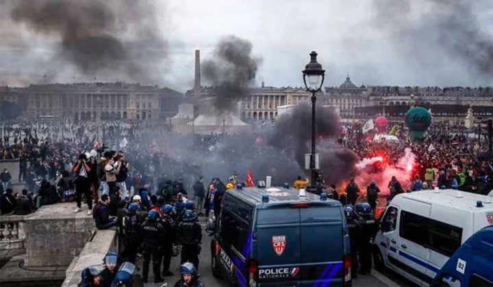 متنازع پنشن اصلاحات کیخلاف پیرس میدان جنگ بن گیا March 17, 2023 مظاہروں کے دوران سڑکوں پر جلاؤ گھیراؤ، پتھراؤ کے بعد مظاہرین کی پولیس سے جھڑپیں، پولیس نے مظاہرین کو منتشر…
