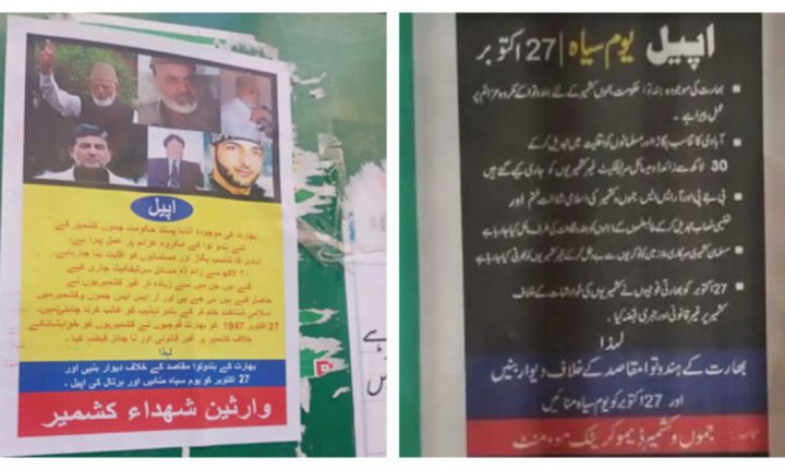 مقبوضہ کشمیر میں 27 اکتوبر کو یوم سیاہ منانے کی اپیل October 24, 2022 مقبوضہ کشمیر کی دیواروں، عمارتوں اور بجلی کے کھمبوں پر چسپاں کیے گئے پوسٹروں میں کہا گیا کہ کشمیری حق…