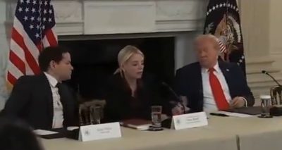 بلیو روم میں ہونے والے اجلاس کے دوران مارکو روبیو نے صدر ٹرمپ کے کان میں سرگوشی کی اور انہیں ایک ہاتھ سے لکھا نوٹ تھمایا