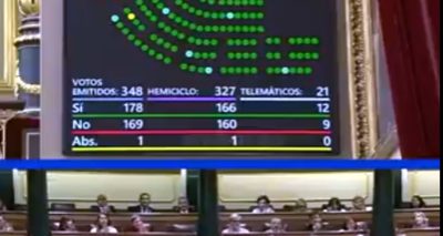 اسپین کی پارلیمنٹ میں ہتھیاروں کی پابندی کے قانون کے حق میں 178 اور مخالفت میں 169 ووٹ پڑے۔