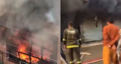 عمارت کے ملبہ کو جیسے ہی ہٹایا جاتا ہے اس میں سے آگ کے شعلے بلند ہونے لگتے ہیں۔