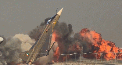 تیجس لڑاکا جہازفضائی مظاہرے کے دوران گرا۔ جائے حادثہ سے سیاہ دھواں اٹھتا ہوا دیکھا گیا