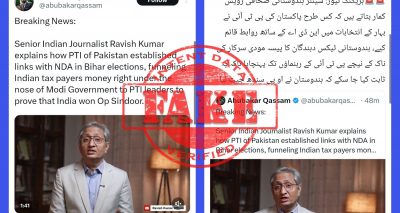 مزید پڑھیئےفیکٹ چیک:کیامعروف بھارتی صحافی نے پی ٹی آئی کی بھارت سے فنڈنگ کا دعویٰ…